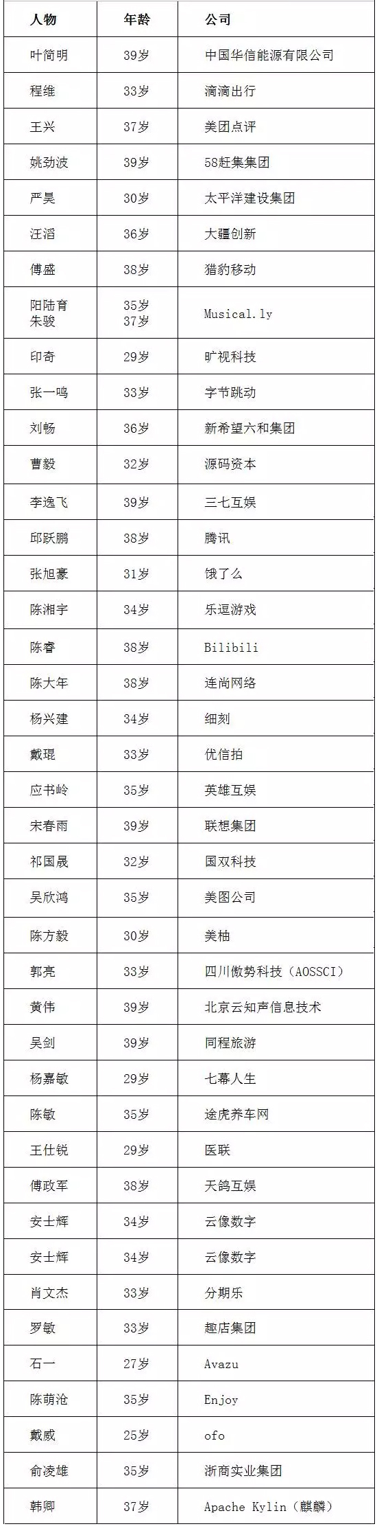 2016年中国40位40岁以下的商界精英