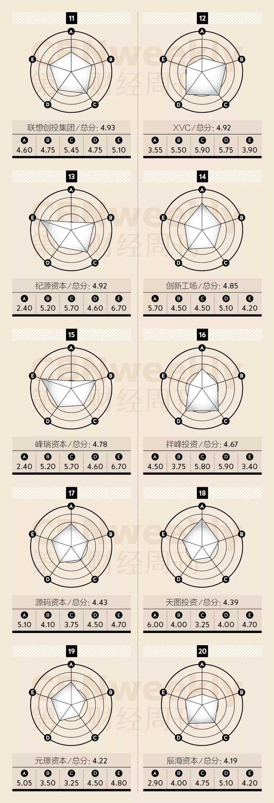 对于单项能力突出的机构,结合定性访谈环节的信息再确认过程,《第一财经周刊》会不吝给在总分之外,额外给出最多25%的加分。在过去几周,我们因此收获了近30家机构合伙人的当面或书面访谈,使得顶级投资机构、投资人追逐“价值红利”的共同潜质,能够被进一步展现出来。