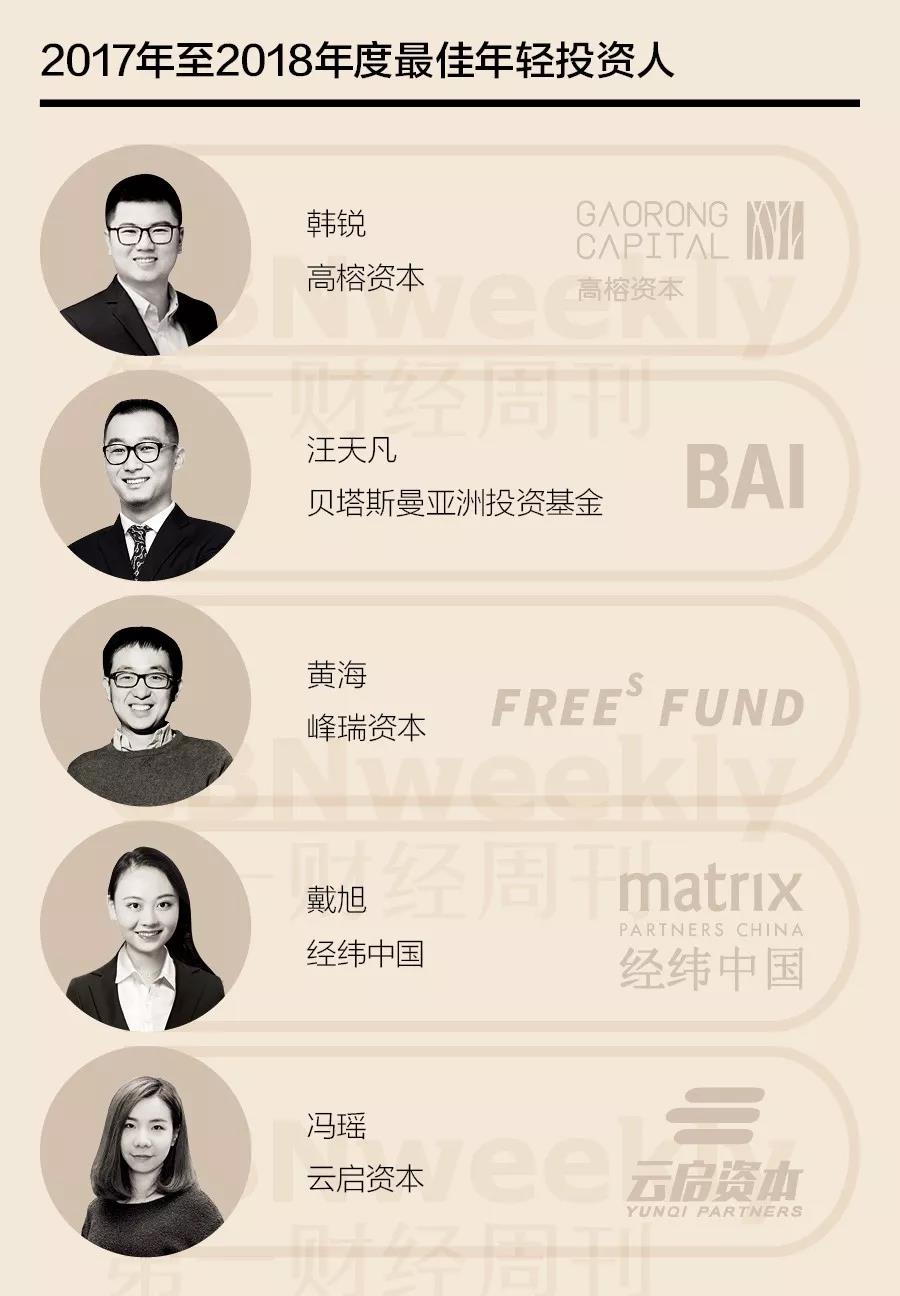 ▲ 《第一财经周刊》“2017年至2018年度中国创投机构排行榜”最佳年轻投资人