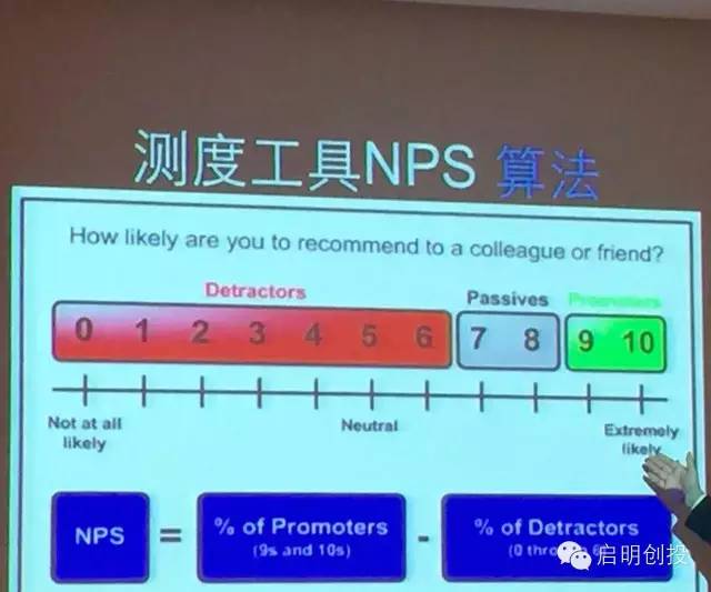 最后,谈一下社群营销。有了好的产品自然会带来好的口碑,甚至带来粉丝。除了4百万的微信公众号用户,罗辑思维还有6万的付费会员,他们是一群爱学习的人,经常会自发的组织一些活动,帮助罗辑思维扩散品牌。这种社群不容易形成,我觉得这是罗辑思维的成功。我们最近也投资了一家做最后一公里配送的公司,叫邻趣。他们让你要什么都可以立刻要,邻趣小哥帮你送。用户体验非常快,使得用户自然向周边的朋友推荐,节省了不少广告和补贴费用。我建议创业者测试一下自己的产品的尖叫指数,也叫NPS(Net Promoter Score),这个比简单的满意度调查好很多。
