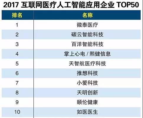 近日,互联网周刊公布了2017年互联网医疗人工智能应用企业TOP50,微泰医疗排名榜首。