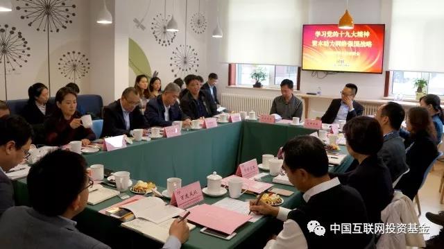 11月6日下午,中国互联网投资基金的沙龙室里,气氛轻松而热烈。十家知名互联网投资机构负责人共聚一堂,围绕学习贯彻十九大精神,谈体会、谈心得,把茶话未来,共商资本助力网络强国战略大计。这十家投资机构分别是中国互联网投资基金、中移资本、红杉资本、宽带资本、中科招商、百度风投、中信国安基金、金沙江创投、欧美大片xxxxbbbb、真格基金,管理资金总规模合计超过4300亿。