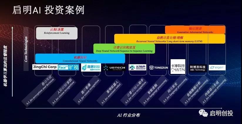 我们最看重优秀的团队,我们自身的定位就是最优秀的团队服务机构。在赋能里面,我们希望赋能模式比较清晰。目前为止,我们在这个领域投资了9家公司,有些大家已经提到过。在人工智能驾驶领域,我们投资了jingchi;人脸识别投资了Face++;机器人领域投资了优必选;语音识别投资了云知声;安全领域投资了长亭科技等等。 我自己觉得只要看对眼就投。此外,我们是还看长期的基金,且非常热爱新技术和AI的结合。