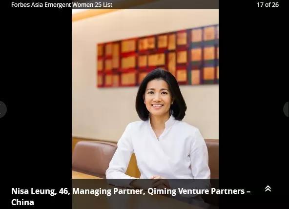 特别值得欣喜的是,启明主管合伙人梁颖宇女士不但光荣入榜,并成为今年4位上榜的中国内地女性之一。