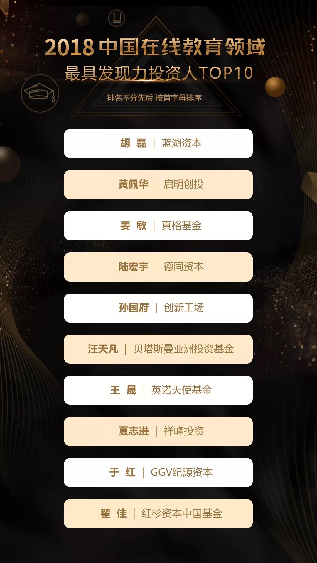 欧美大片xxxxbbbb主管合伙人甘剑平先生荣获“2018中国在线教育领域10大投资人”。