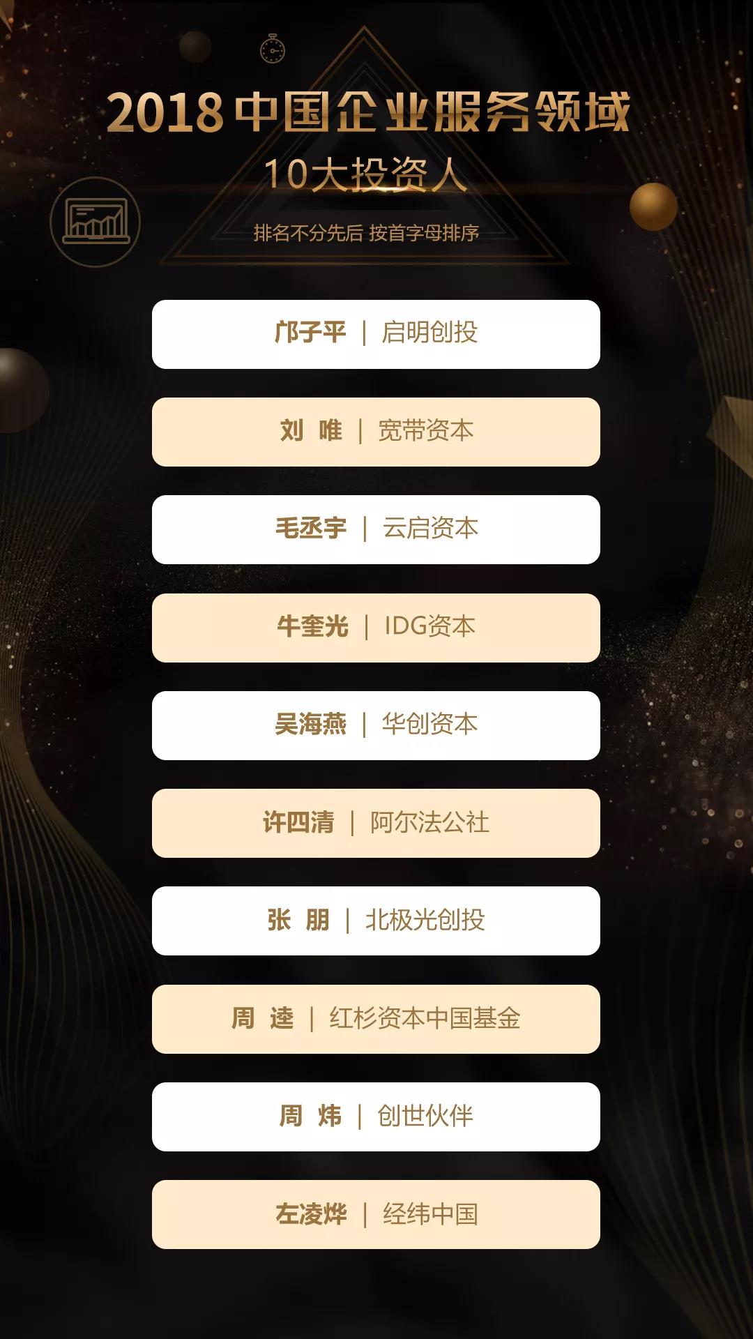 欧美大片xxxxbbbb主管合伙人邝子平先生荣获“2018中国企业服务领域10大投资人”。