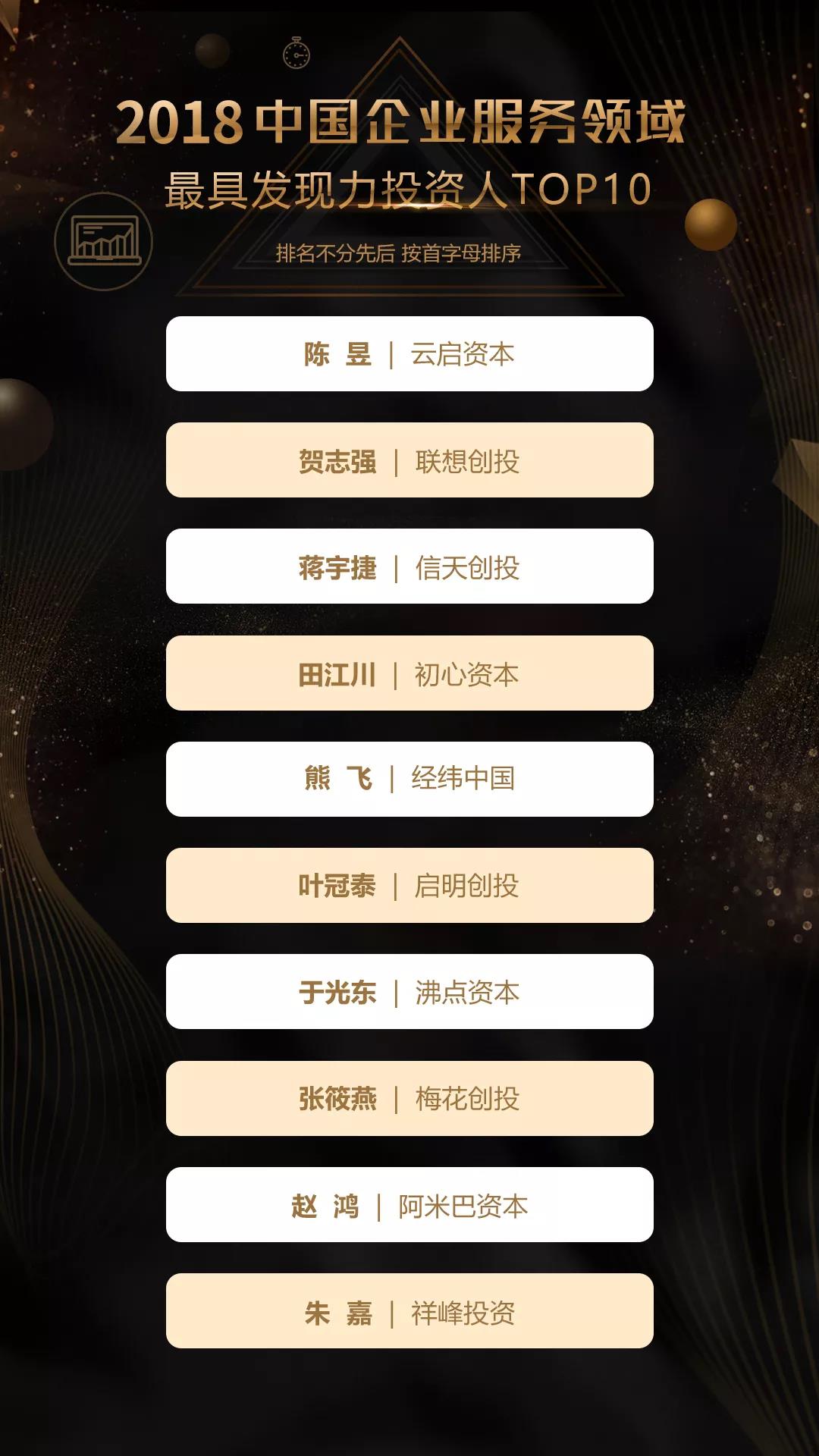 欧美大片xxxxbbbb合伙人叶冠泰先生荣获“2018中国企业服务领域最具发现力投资人Top10”。
