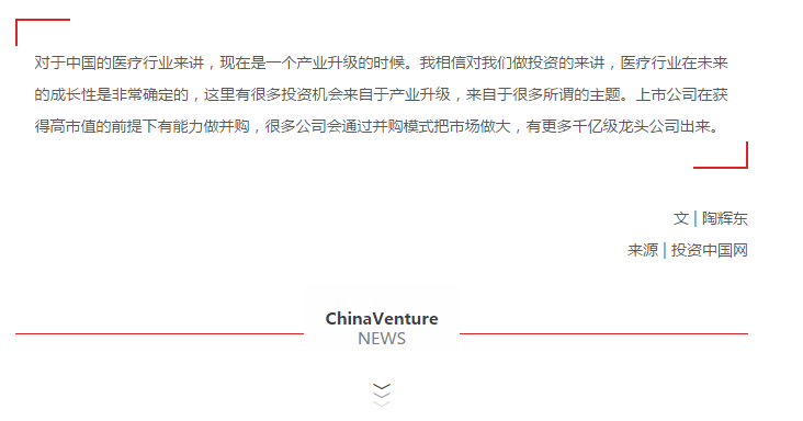 最后有一个结语,目前对于中国的医疗行业来讲,现在是一个产业升级的时候。我相信对我们做投资的来讲,医疗行业在未来的成长性是非常确定的,这里有很多投资机会来自于产业升级,来自于很多所谓的主题。上市公司在获得高市值的前提下有能力做并购,很多公司会通过并购模式把市场做大,有更多千亿级龙头公司出来。也许过三五年,中国医药行业超过千亿级市值的公司有一批。对于企业来讲,应该抓住这一行业机遇,在专注内生增长的同时,积极通过并购整合手段,拓展产品及服务布局,构筑业务壁垒,创造协同价值。但并购过程中有很多风险,需要通过所谓的方法论规避这些风险,让并购也能够成为公司的核心竞争力,这样才有可能把并购做的更好,让自己做的更大。