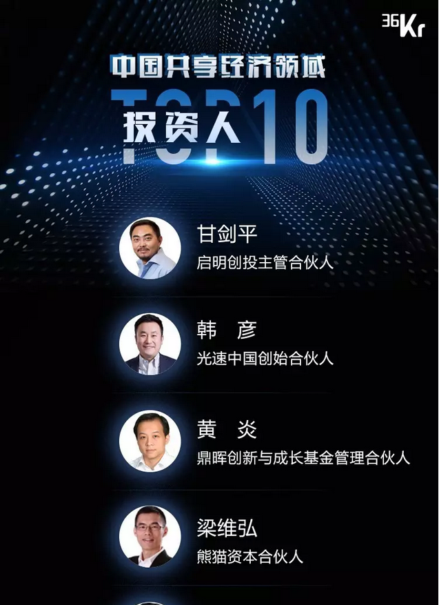 「中国共享经济领域10大投资人」