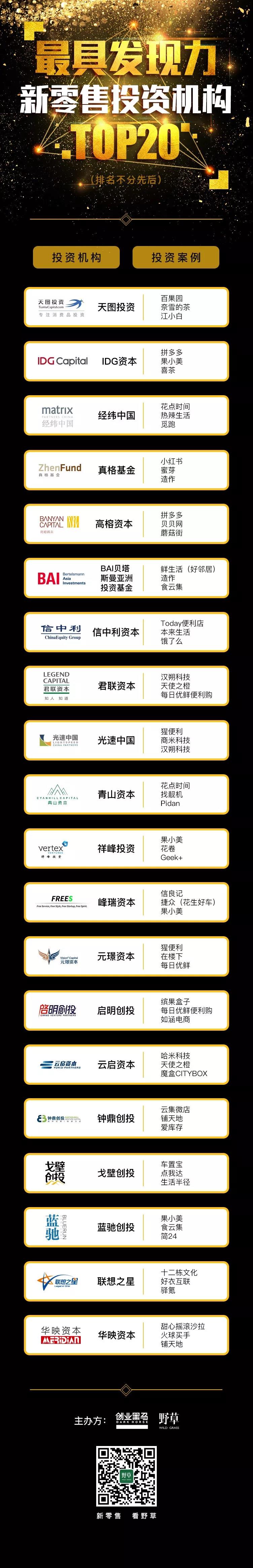 以下是最具发现力新零售投资机构榜单: