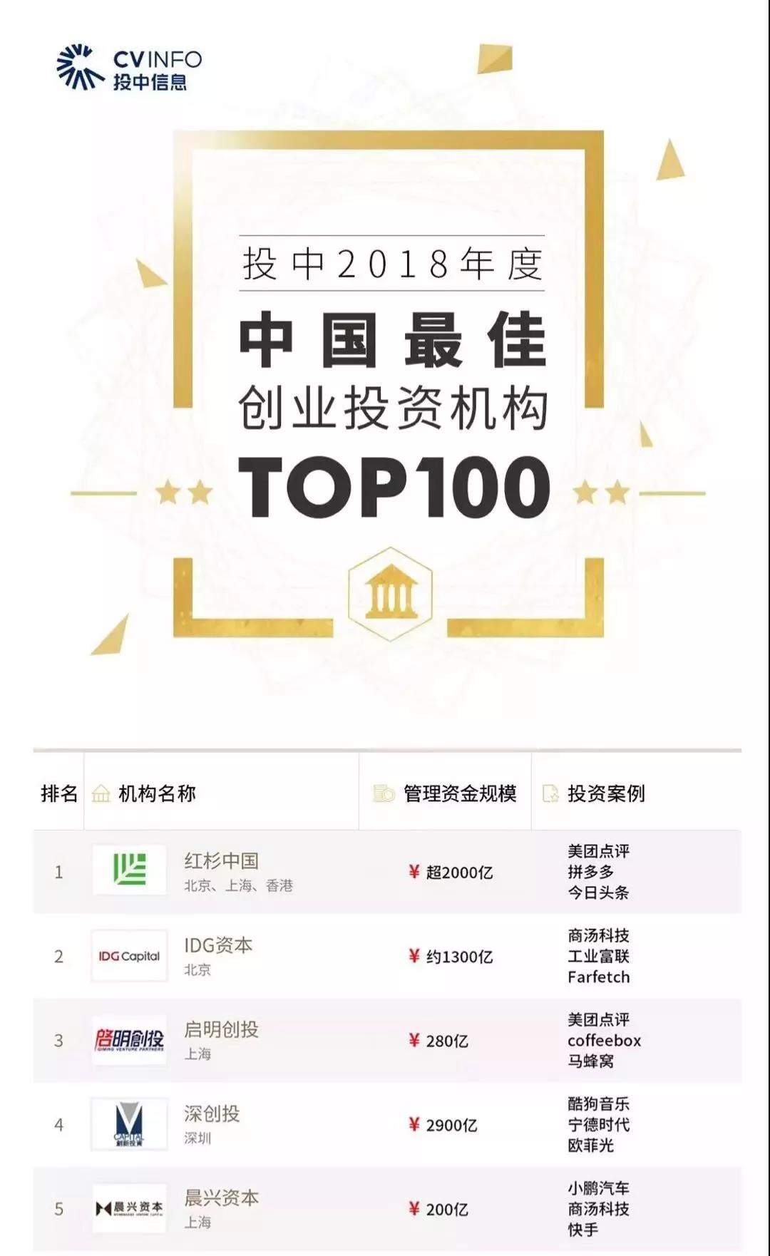 启明头条 | 欧美大片xxxxbbbb荣获“投中榜”2018年度中国最佳创投机构TOP3