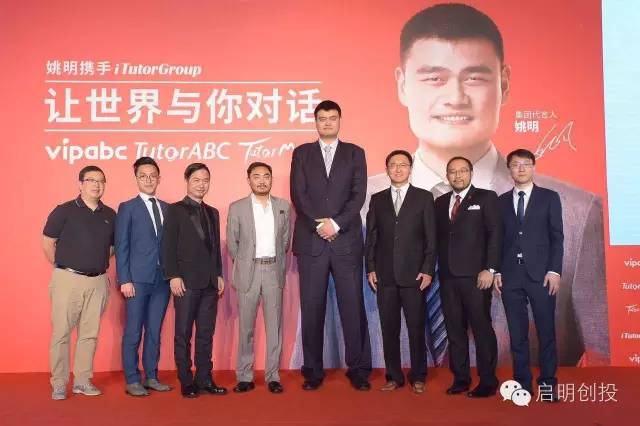 启明主管合伙人甘剑平(左四)与姚明及iTutor高管在仪式上的合影