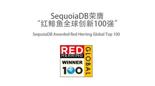2015年11月19日,由全球最具影响力的商业和创新媒体,《红鲱鱼》(RedHerring)颁发的,全球创新大奖(Red Herring Global Top100)。SequoiaDB巨杉数据库,凭借高速的发展和领先的创新,斩获殊荣,跻身全球创新100强。