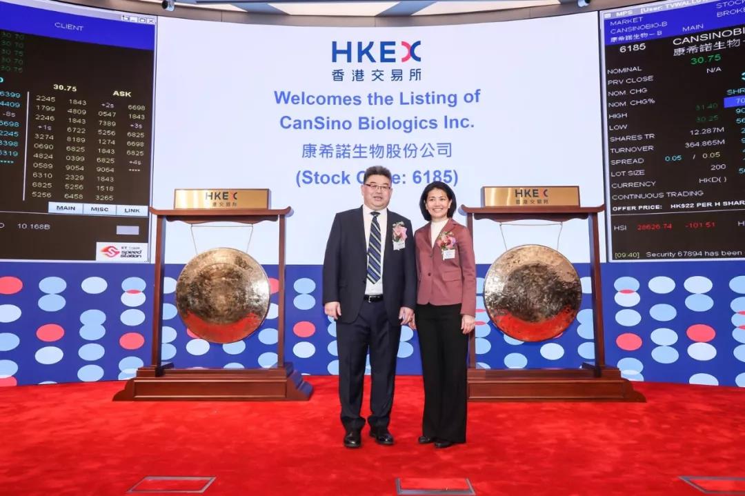 欧美大片xxxxbbbb主管合伙人梁颕宇与康希诺生物董事会主席兼联合创始人宇学峰博士在上市现场