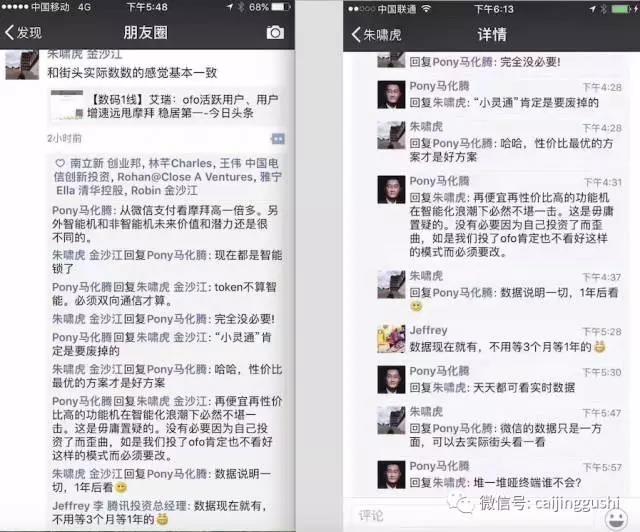 朱啸虎两天之内上了两次头条,昨天接受华尔街见闻采访,改口说ofo、摩拜不会合并。今天和摩拜投资人马化腾在朋友圈互怼,护犊心切的双方,在朋友圈你来我往,让吃瓜群众好好看了场热闹。