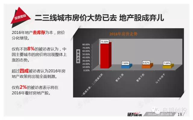 但房地产股或成为2016年的“黑洞”,报告指出,仅有2%的被访机构表示2016年看好房地产股。