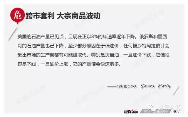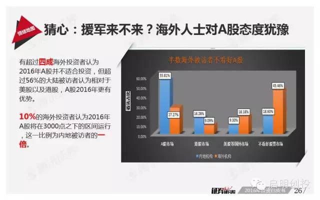 但“黑天鹅”不可不防,经济下滑风险成为被访者眼中最值得关注的风险之一,去产能化以及调结构并行,A股市场将如何适应,也是机构普遍思考的问题。 以下为《2016年投资白皮书》41页纯干货,精彩内容不容错过!