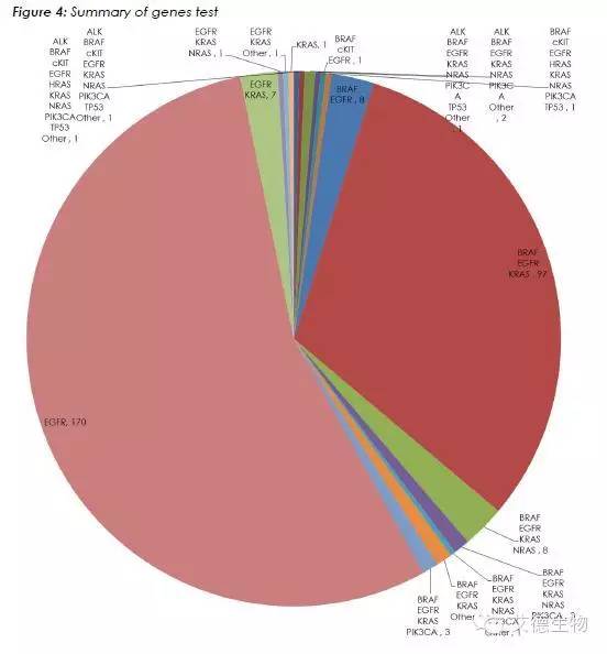 多重基因检测逐渐成为趋势 从此次EMQN机构提供的数据来看,多重基因的检测比例逐步上升:近一半实验室(141家,45.3%)不只检测EGFR单基因突变,其中97家同时检测BRAF、EGFR、KRAS基因,其余44家实验室同时还检测了更多基因,如ALK、Ckit、HRAS、NRAS、PIK3CA、TP53及其它基因。