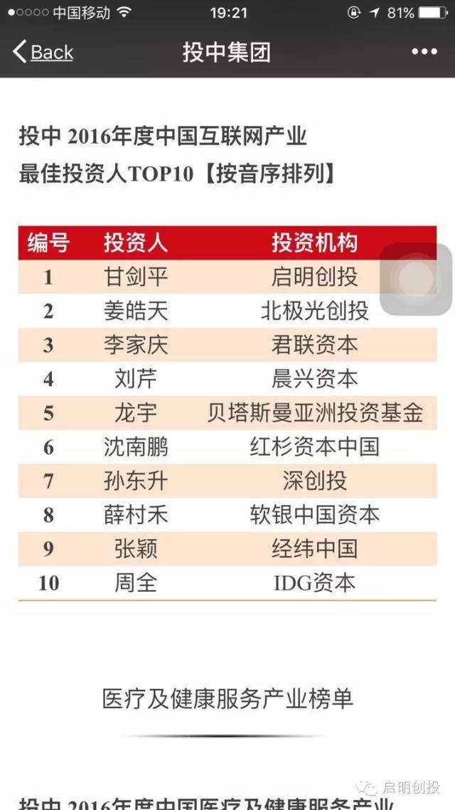 昨晚,在投中2016中国投资(深圳)年会上,“投中2016年度中国VC/PE产业榜”隆重发布。欧美大片xxxxbbbb分别斩获“互联网产业”、“医疗及健康服务产业”、“文化及娱乐传媒产业”、“先进制造与高科技产业”、“新能源与清洁技术产业”几乎涵盖所有行业领域 “投资机构TOP10”的称号。同时还获评“投中2016年中国最活跃外资创业投资机构TOP10”、“投中2016年中国最佳回报外资创业投资机构TOP10”、“投中2016年中国创业投资领域最佳外资投资者关系管理团队TOP3”。而且在各产业领域最佳投资案例TOP10中,启明投资的多家优秀企业都榜上有名。