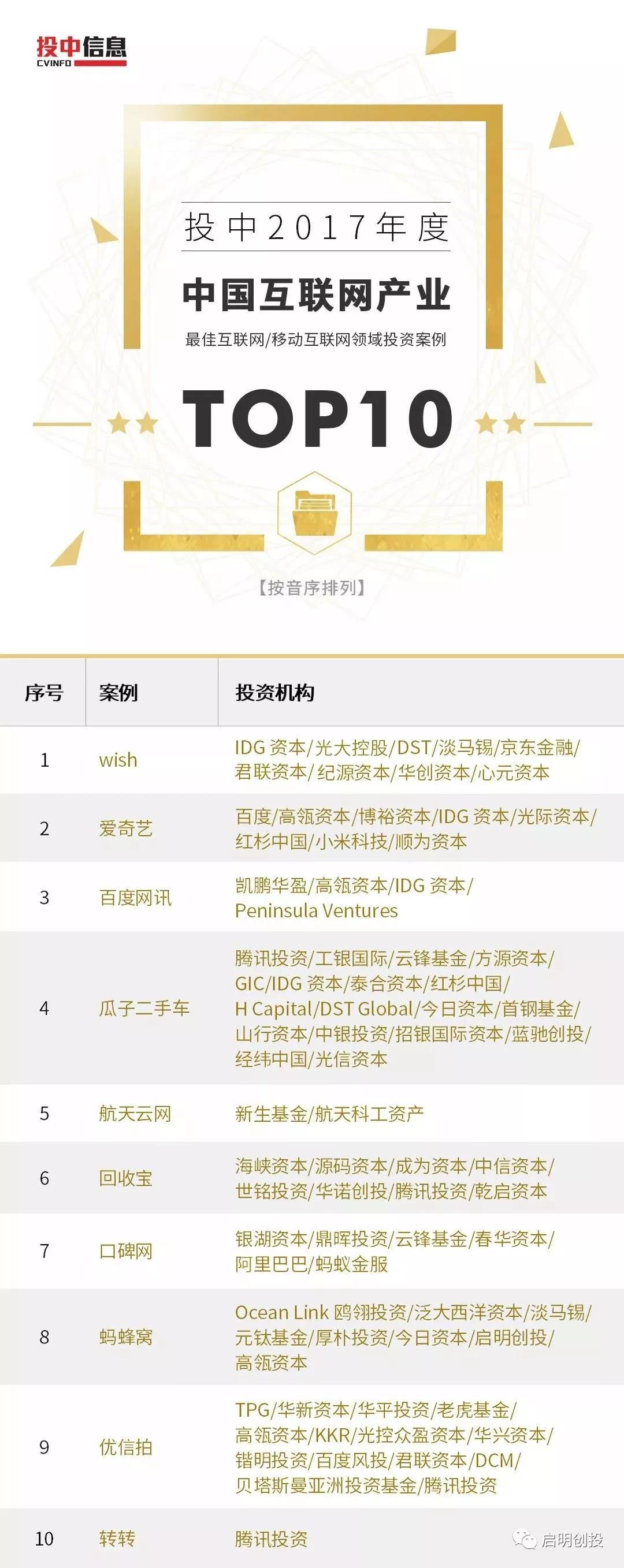 4月24日,投中信息正式发布“投中 2017年度榜”榜单。欧美大片xxxxbbbb在个细分产业榜单的奖项中同样表现抢眼,共有14家被投企业入围各产业榜单最佳投资和退出案例Top10。这14家企业包括: