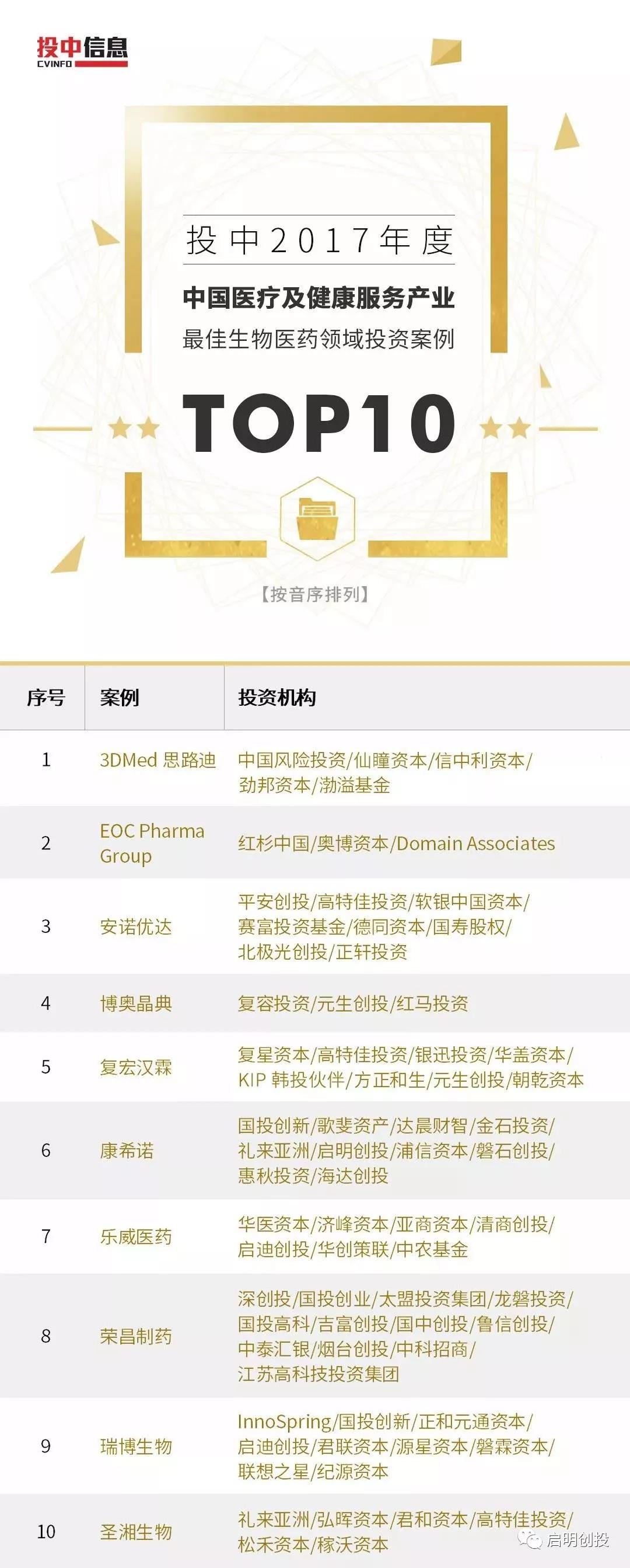康希诺——“中国医疗及健康服务产业 最佳生物医药领域投资案例 Top10”