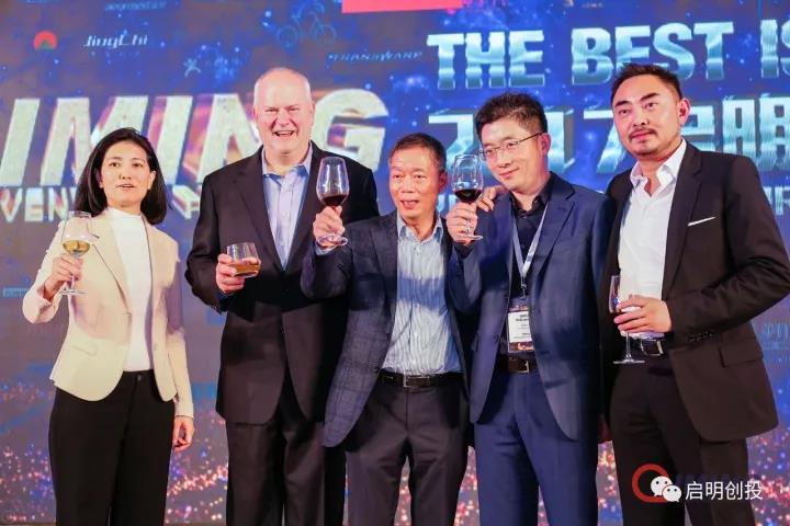 接下去,邝子平请上了启明另外4位主管合伙人Gary Rieschel、甘剑平、梁颖宇和胡旭波,5人一起举起手中的酒杯,向现场的来宾送上最诚挚的感谢和祝福!台下宾客也纷纷举起相机记录下这个精彩的时刻,热烈的回应和欢呼声将晚宴气氛推向了高潮。