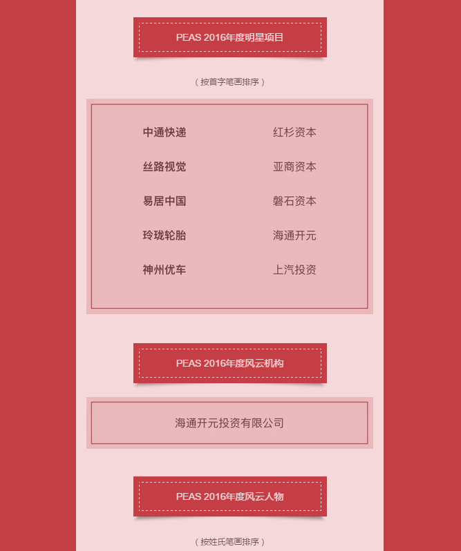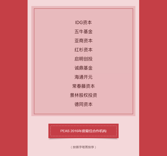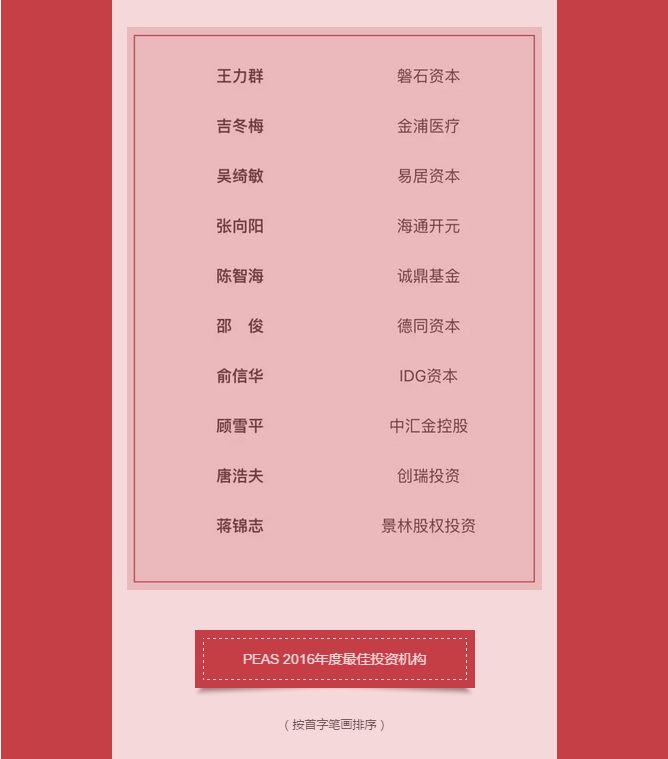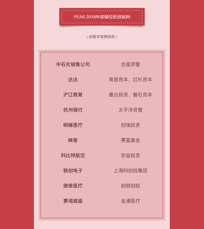 PEAS 2016年度股权投资榜单揭晓 启明获评年度最佳投资机构