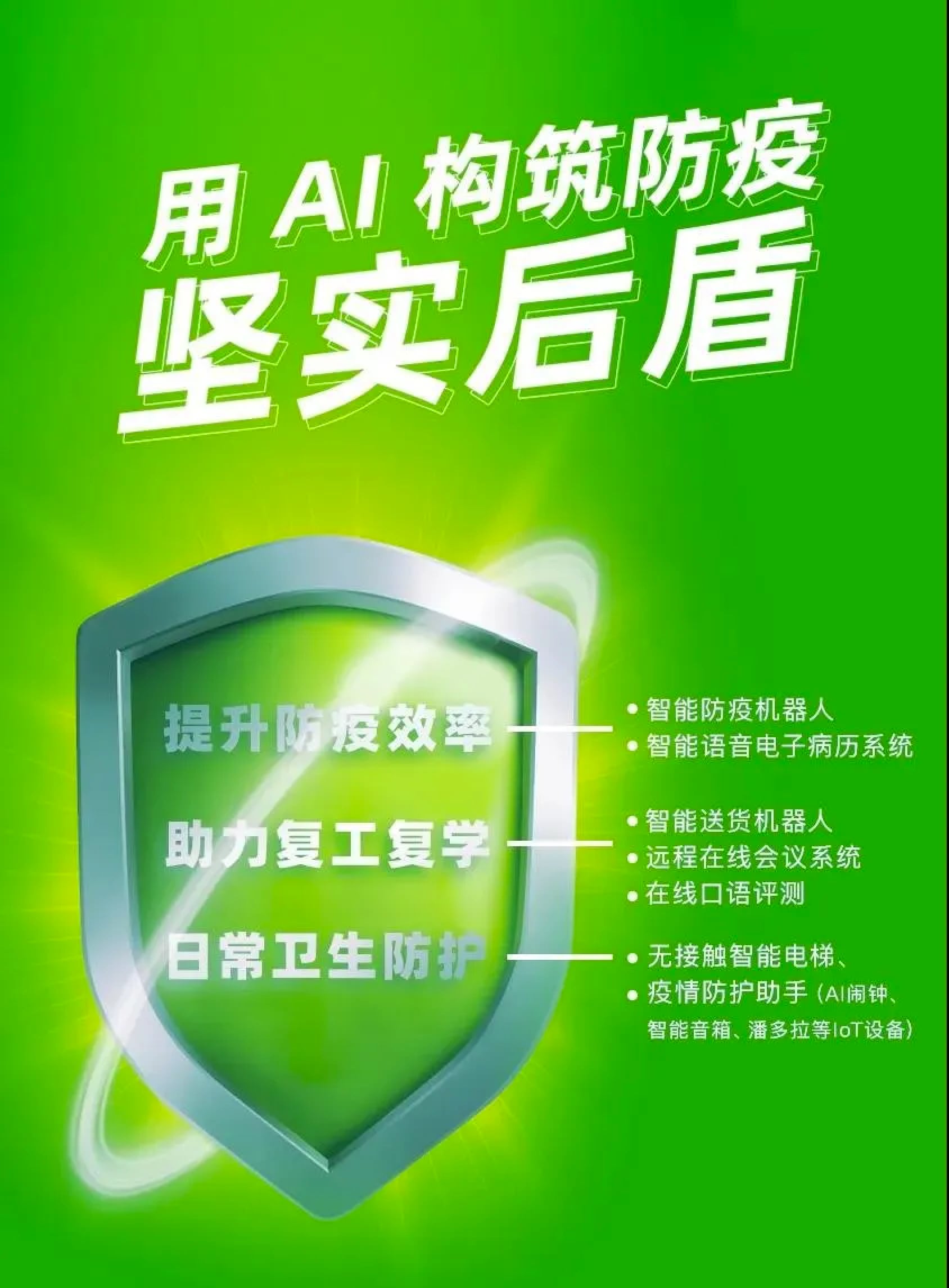 截至目前,云知声已先后推出“智能防疫机器人”、“智能语音电子病历”、“智能送货机器人”、“远程在线会议系统”、“在线口语评测”、“无接触智能电梯”、“疫情防护助手”等涵盖疫情“管-控-服”全场景的人工智能防疫产品,迅速投入各级政府单位、医疗机构、街道社区、办公楼宇等场景,为抗疫提供最强后援。