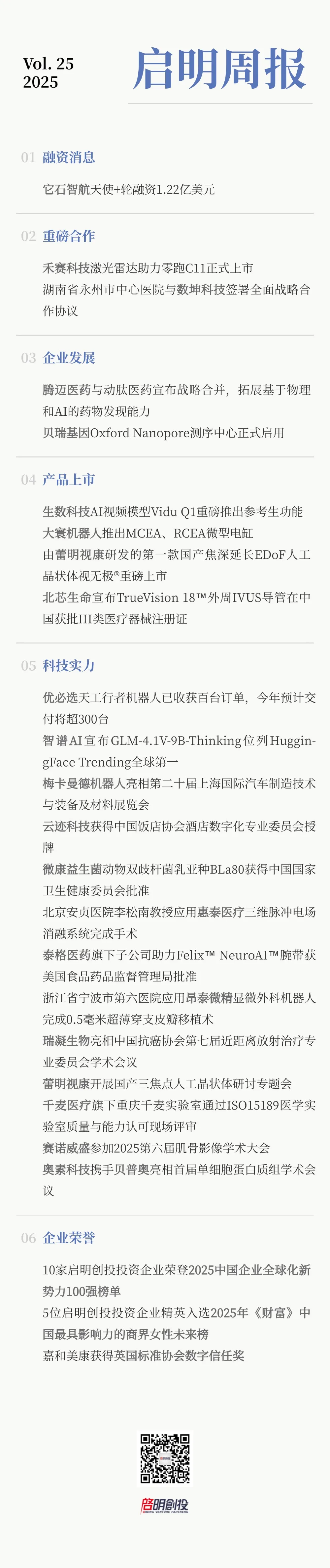 <h2 class="font-medium">启明周报 | 启明创投投资企业融资及动态速递 Vol. 25, 2025</h2>