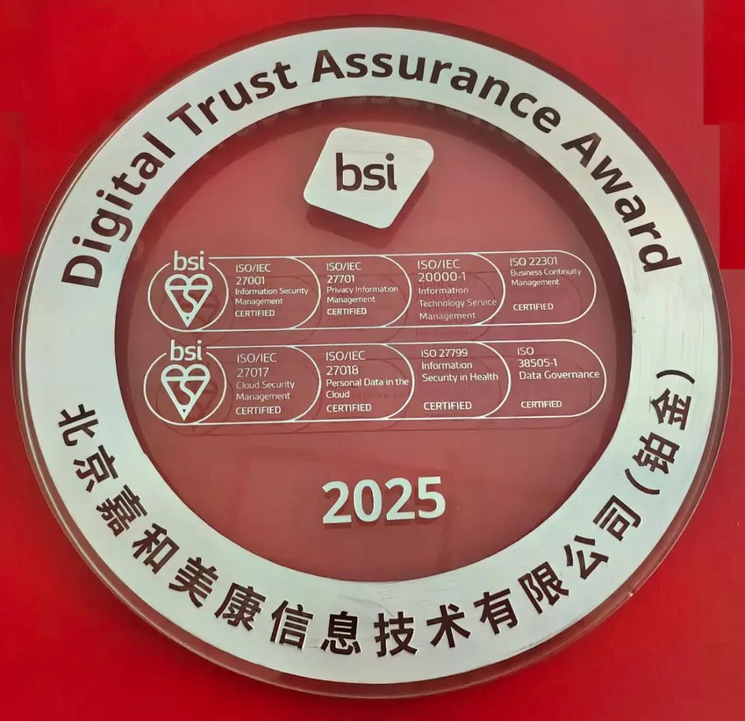 <p class="rtejustify"><span style="font-size:16px;">目前，嘉和美康已获得BSI颁发的ISO27001、ISO27701、ISO9001、ISO38505、ISO22301、ISO14001等多项认证，认证范围覆盖信息安全管理、隐私信息管理、质量管理、数据治理、业务连续性、环境管理等方面。成功通过BSI多项认证的严格审核，充分表明嘉和美康在信息安全、数据隐私安全管理方面已达到国际领先水平。</span></p>