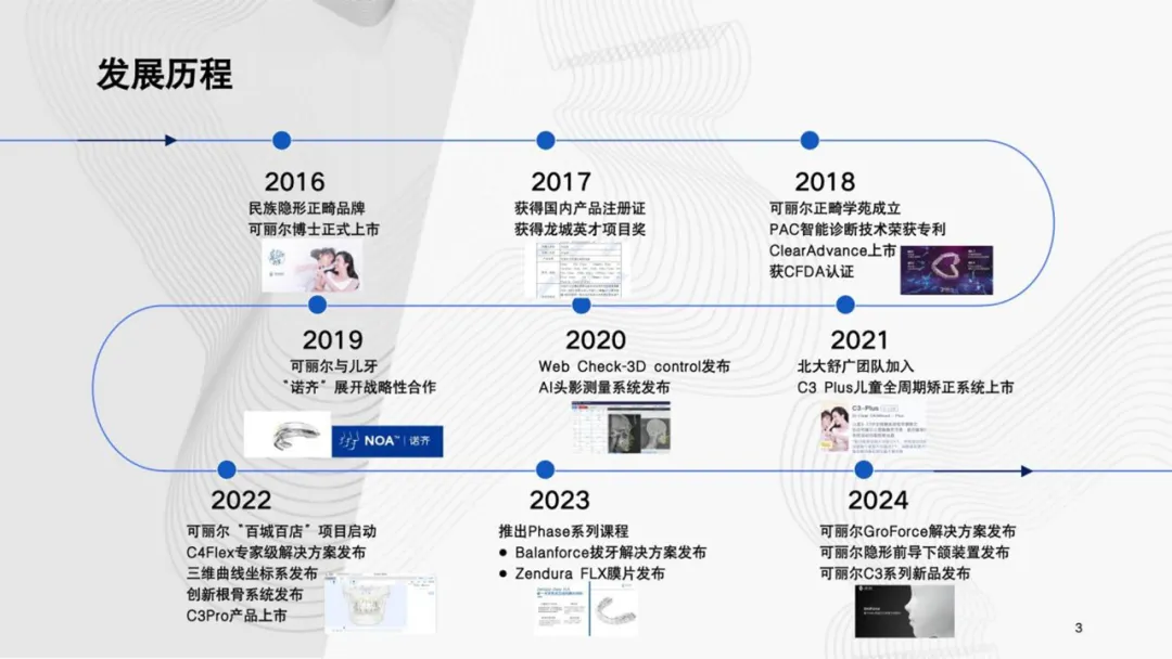 <p class="rtejustify"><span style="font-size:16px;">近些年，可丽尔博士利用强大的软件团队和专业的医学研发团队不断推出创新产品，如GroForce儿童及青少年生长改良解决方案、BalanForce拔牙解决方案、HE附件模板、强化隐形矫治器、隐形口外弓、隐形下颌前导、隐形颊面管、可丽尔博士 Clear III（改良式FR-III）、C4 Flex数字化隐形矫正、基于根骨系统的牙槽弓坐标系、动态&#x0002C317;系统、AI头影测量自动诊断系统和Clear-Check方案审阅系统等。2024年度，可丽尔博士C3儿童全周期矫治系统升级为可丽尔C3儿童青少年全周期矫治系统，扩展了产品的边界，产品体系演变得更加包容和开放。</span></p>