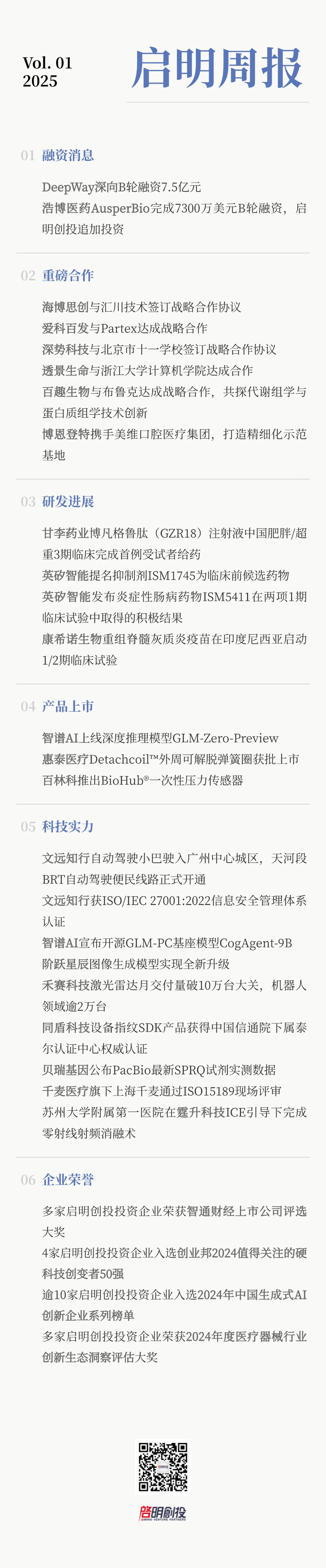 <title>启明周报 | 启明创投投资企业融资及动态速递 Vol. 01, 2025 | Qiming Venture Partners</title>