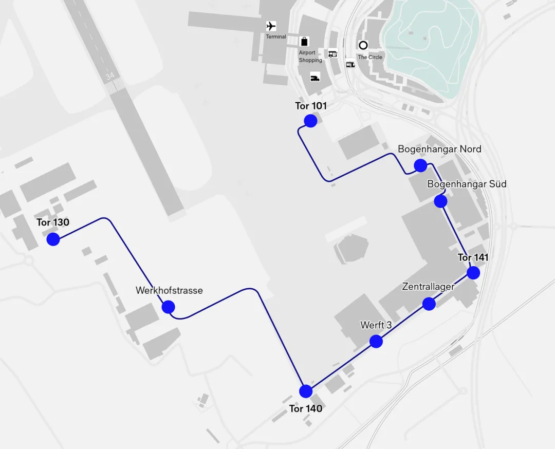 <p class="rtejustify"><span style="font-size:16px;">落地苏黎世机场的文远小巴每辆最多可容纳9位乘客，补充现有为机场内各公司员工服务的班车路线，为其提供更便捷的通勤接驳服务。运营路线将从机场101号门员工入口延伸至130号门维修区域，覆盖机场内部非滑行区域的多个站点。该路线完全独立于机场飞行运营区域之外，是无人驾驶在机场应用的最佳测试路线，同时可确保运行的安全性和独立性。</span></p>